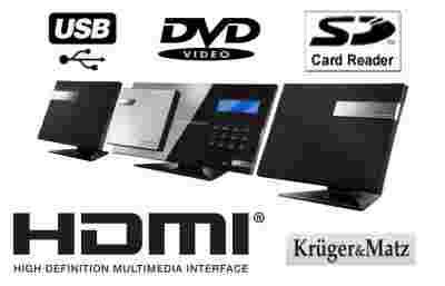 Domowy system audio Kruger&Matz z DVD wejściem SD, USB, wyjściem HDMI model KM7788 wraz z 2 letnią gwarancją producenta.