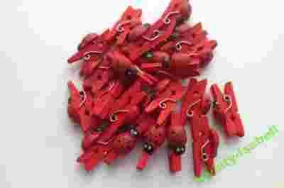 KLAMERKI = DREWNIANE =CZERWONE + biedronka 24 SZT