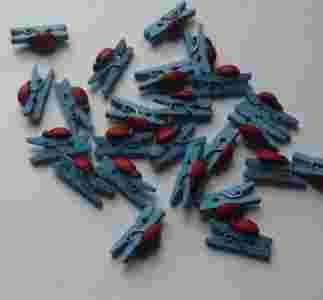 KLAMERKI DREWNIANE niebieskie z biedronką