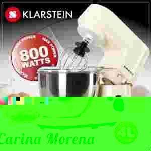 Uchwyt szybko mocujacy zapewnia bezproblemowa wymiane haków do ubijania, mieszadel i trzepaczek. Klarstein Carina Morena wyposazony jest w mise ze stali szlachetnej o pojemnosci 4 litrów.