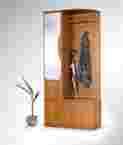 Garderobę tworzy zestaw składający się z szafy z półkami i lustrem, wieszaka oraz półki na drobiazgi.