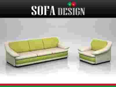 Klasyczna KANAPA AMBRELLA, ekoskóra limonka + ecri