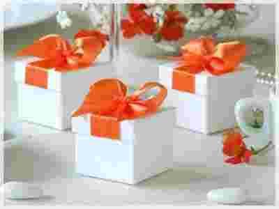 BIAŁE PUDEŁKO Z POMARAŃCZOWĄ KOKARDKĄ