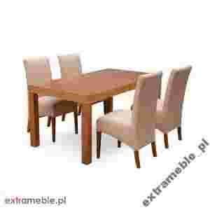 Blanca to komplet składający się z 4 krzeseł skośnych o wysokości 98 cm oraz klasycznego stołu Eliot o wymiarze 140 x 80 cm. Stół wykonany w całości z drewna z blatem z okleiny naturalnej. Jedna wkładka o szerokości 40 cm pozwala na jego praktyczne rozłożenie. Krzesła charakteryzują się miękkim siedziskiem i nowoczesnym wzornictwem. Zestaw ten to połączenie klasycznego design'u z praktycznym zastosowaniem. Blanca sprawdzi się w salonie, jadalni lub kuchni. Kompaktowe rozmiary pozwalają na dopasowanie zestawu także do mniejszych pomieszczeń. Konstrukcje elementów zestawu zostały wykonane z wysokiej jakości drewna bukowego, co gwarantuje ich długą żywotność. Wybierz najwyższą jakość i ciesz sie pięknymi meblami w swoim domu.