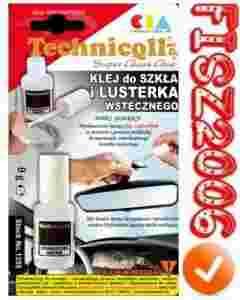 Klej do szkła i lusterka wstecznego jest najnowszym osiągnięciem inżynierii chemicznej, przeznaczonym do uniwersalnego, błyskawicznego łączenia prawie wszystkich materiałów. Posiada najwyższe parametry kleju technicznego w trwałym, niewidocznym łączeniu szkła, kryształu i kamieni szlachetnych z różnymi materiałami zarówno twardymi jak i elastycznymi takimi jak: metale, tworzywa sztuczne, guma, drewna. Jest klejem uniwersalnym. Nieodzowny w jubilerstwie i optyce. Opakowanie z pędzelkiem jest rewelacyjnym rozwiązanie, w pełni wykorzystującym ogromne możliwości kleju. Szczególnie przydatny jest w klejeniu lusterka wstecznego do samochodowej szyby przedniej, gdzie spoina pracuje w ekstremalnie trudnych warunkach takich jak: drgania, zmienna temperaturę (od -50°C do +100°C, wilgoć, szron i promieniowanie UV). Dołączona gumowa łatka służy jako łącznik między powierzchnią szyby, a metalową częścią uchwytu lusterka, eliminuje nierówności i amortyzuje drgania. W przypadku tego rodzaju połączeń, nałożony równomiernie pędzelkiem film klejowy zapewnia jednakowe rozłożenie sił adhezyjnych w czasie naprężeń zrywających, co gwarantuje prawidłową, trwałą naprawę.Klej łączy silnie i trwale tylko powierzchnie gładkie, dopasowane do siebie i tak jak w przypadku wszystkich klejów muszą one być czyste i odtłuszczone. Klej nanosić tylko na jedna z łączonych powierzchni.