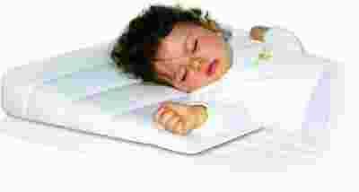 Profilowany kształt poduszki gwarantuje prawidłowe ułożenie kręgosłupa, a ułożenie główki nieco wyżej od reszty ciała zapobiega ulewaniu się pokarmu.