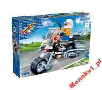 Wybierz się tym super szybkim motocyklem policyjnym ulicami miasta BanBao i ścigaj przestępców, nie pozwalając im uciec! Motocykl posiada napęd. Pociągnij do siebie i puść aby napęd zadziałał i rozpędził twoją patrolową maszynę. Kup ulubioną zabawkę policyjną w naszym sklepie i przeżyj przygodę z klockami BanBao!