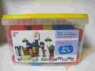 Klocki drewniane 100 elementów Kolorowe w wiaderku