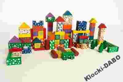 Klocki drewniane 100 sztuk z sorterem DABO, wzorki