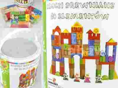 Zestaw zawiera 80 wysokiej jakości i bardzo estetycznych klocków drewnianych.
