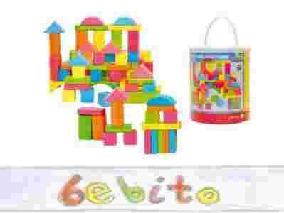 Klocki drewniane pastelowe kolory wiaderko 75 el.