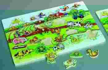 Klocki drewniane puzzle - farma