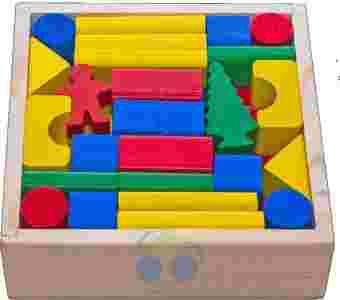 KLOCKI DREWNIANE W SKRZYNCE 50 ELEMENTÓW KOLOROWE