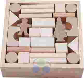 Klocki drewniane naturalne, 50 elementy firmy B&B mają idealne kształty i gładkie krawędzie.