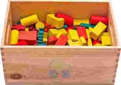 KLOCKI DREWNIANE W SKRZYNI 135 ELEMENTÓW KOLOROWE