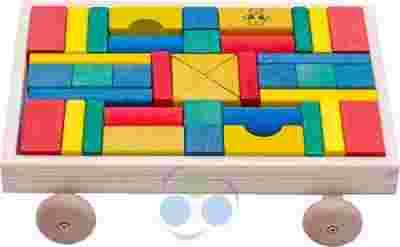 KLOCKI DREWNIANE W WÓZKU KOLOROWE 40 ELEMENTÓW