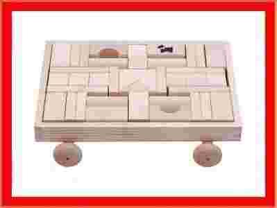 KLOCKI DREWNIANE W WOZKU NATURALNE 40 ELEMENTOW