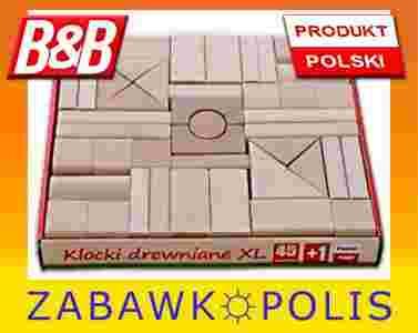 Klocki drewniane XL naturalne, 45 elementów firmy B&B.