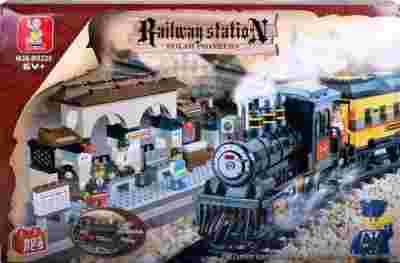 Klocki DWORZEC Tory + KOLEJKA POCIĄG Sluban 0235