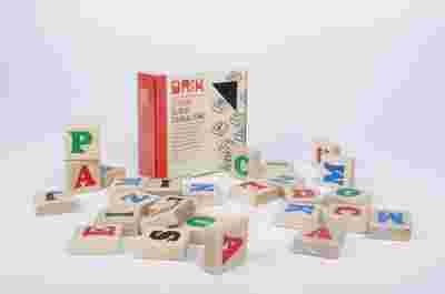 KLOCKI edukacyjne BRIK drewniane LITERKI 54 sztuki
