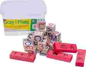 - 25 klocków wyprodukowanych w Polsce, ze znakami np.odejmowania, dodawania, mnożenia,oraz z literkami i cyframi.