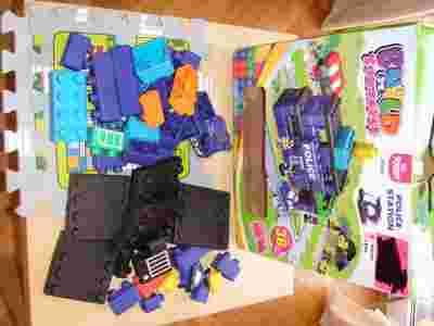 Sprzedam klocki gumowe Build it yourself - POSTERUNEK POLICJI.Pudełko 36x 37x 12 zawiera 50 gumowych elementów: 48 klocków o różnych rozmiarach i kolorach + samochodzik + helikopter (wszystko gumowe) oraz dwie piankowe maty z rysunkiem ulicy i budynków. Zdjęcie na pudełku i opisy nie odzwierciedlają rzeczywistej zawartości. Plusy zabawki są takie, że jest ona super dla małego dziecka (moje się nimi bawiło do ok 3 roku), które jeszcze za bardzo nie umie nic konkretnego skonstruować, super do zabawy np w kąpieli - może nimi stukać o wannę i jako że są miękkie raczej nic się nie uszkodzi, można też tłuc nimi o podłogę, ewentualnie o meble (nie obijają i nie stukają). Minusem jest to, ze rzeczywiście ciężko się z nich buduje, bo konstrukcje łatwo się rozpadają (marnie się trzymają). Widziałam takie same w Tesco za 99 zł więc moją cenę uważam za całkiem przystępną. Stan klocków bdb, pudełko nieco zdeformowane i obdarte.