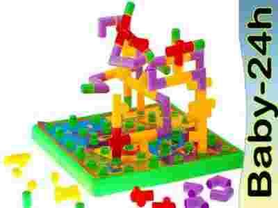 Nowy, edukacyjny, bajecznie kolorowy zestaw rurek, kolanek, krzyżaków konstrukcyjnych. Fajne, pomysłowe klocki do zabawy z planszą, która ma przystosowane wypustki do układania konstrukcji z kolorowych rurek, kolanek, krzyżaków. Zabawa bardzo fajnie rozwija umięjętności kreatywnego tworzenia budowli przestrzennych.