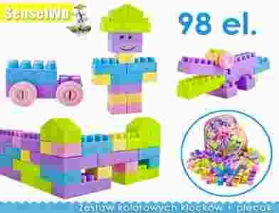 - 98 kolorowych klocków (w tym kółka)