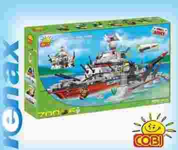 Zestaw klocków firmy COBI - Pancernik Militarny z serii Mała Armia. Mała Armia to specyficzna i unikalna kolekcja klocków. Jej stylistyka oparta jest na tematyce wojskowej. Mali dowódcy mogą bawić się w żołnierzy i prowadzić manewry wojskowe. Większość zestawów posiada ruchome części, które są bardzo ważne dla atrakcyjności danej zabawki. Linia ta umożliwia najróżniejsze scenariusze zabaw: od terenów pustynnych, poprzez walki w powietrzu do marynarki wojennej. Kolekcja posiada wierną grupę fanów oraz z łatwością przyciąga nowych chłopców do zabawy.