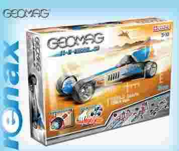 Geomag Wheels - Zupełnie nowa generacja klocków Geomag. Kolekcja do budowy trójwymiarowych samochodów Geomag Wheels. Zestawy zawierają wykonane z elastycznego plastiku, giętkie korpusy i koła, które połączone przy pomocy magnetycznych pałeczek i niklowanych kulek tworzą wspaniałe, wyścigowe auta. Część zestawów wyposażona została w specjalne platformy/wyrzutnie do zjeżdżania. Zbuduj platformę, rozpędź autko Geomag Wheels i przeprowadź kontrolowaną katastrofę.