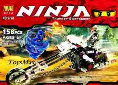1. 156 klocków, wykonanych z wysokiej jakości tworzywa ABS, z których można zbudować Motocykl Czaszki z figurkami Jay'a - mistrza błyskawic oraz Chopowa. Ludziki posiadają ruchome i chwytne kończyny. Dodatkowo zestaw zawiera akcesoria dla figurek, a także unikalną broń Ninja - Nunczako Błyskawic...