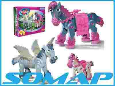 Zestaw Konie i jednorożce składa się z 418 elementów piankowych, plastikowych łączników i kapsli, oraz instrukcji dotyczącej budowy modeli. Zawartość opakowania daje możliwość złożenia 3 postaci jednocześnie, bądź 6 oddzielnych postaci z zestawu.