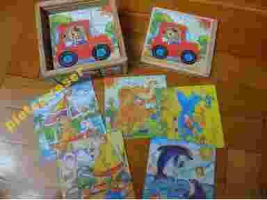 Klocki puzzle drewniane w pudełku super