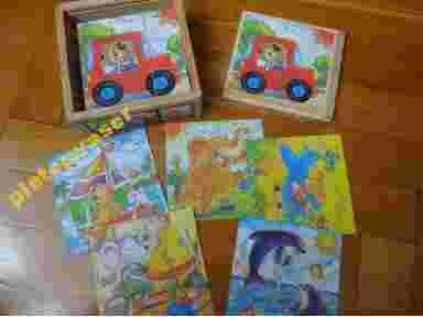 Klocki puzzle drewniane w pudełku super