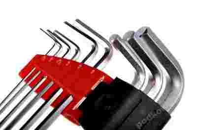 klucze imbus o rozmiarach 1,5 mm; 2 mm; 2,5 mm; 3 mm; 4 mm; 5 mm; 6 mm; 8 mm; 10 mm