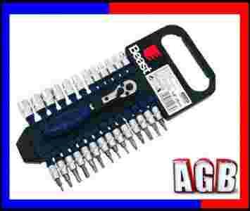 Zestaw kluczy nasadowychi bitów w nasadkachz grzechotką 1/4".