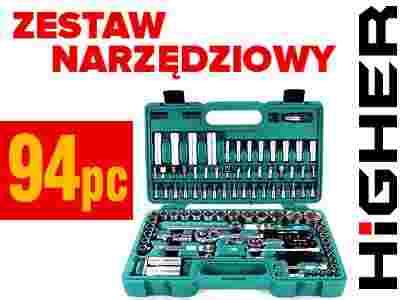 Klucze nasadowe 1/2" - 18 sztuk: 10, 11, 12, 13, 14, 15, 16, 17, 18, 19, 20, 21, 22, 23, 24, 27, 30, 32 mm Nasadki do świec 1/2" - 2 sztuki: 16, 21mm Klucze nasadowe długie 1/2" - 4 sztuki: 14, 15, 17, 19mm Klucze nasadowe 1/4" - 13 sztuk: 4, 4.5, 5, 5.5, 6, 7, 8, 9, 10, 11, 12, 13, 14 mm Klucze nasadowe długie 1/4" - 7 sztuk: 7, 8, 9, 10, 11, 12, 13 mm Klucze nasadowe 1/4" wraz z bitami Torx: T8, T10, T15, T20, T25, T30 Hex: (imbus): 3, 4, 5, 6 mm Płaskie - 4, 5: 5; 7mm Bity Hex (imbus): 6, 8, 10, 12, 14mm Płaskie: 8, 10, 12mm Torx: T40, T45, T50, T55 Klucze ampulowe (imbusowe): 1.5, 2, 3mm Wkrętak 1/4": do nasadek i bitów Adapter do bitów 1/2" Pokrętło typ T z kwadratem przesuwnym na 1/4" Pokrętło typ T z kwadratem przesuwnym (przelotką') na 1/2" - 250mm Grzechotka: 1/2" oraz 1/4" Przegub Cardana 1/2" i 1/4" Przedłużka 1/2": 125 i 250mm Przedłużka 1/4": 50 i 100mm Przedłużka gięta 1/4": 150mm