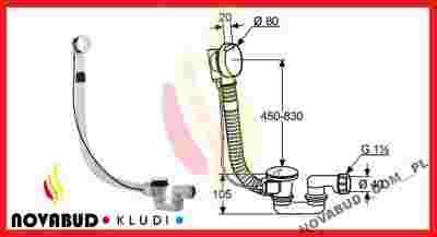 - z ciągiem Bowdena o długości 850 mm - z elastyczną rurą przelewową o długości 760 mm - do wanien specjalnych - z nierozbieralnym syfonem - 2 przeguby obrotowe - z górną częścią przelewową - przepustowość 54 litry na minutę