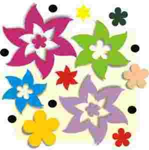 WEWNATRZ DUZYCH KWIATKOW ZNAJDUJA SIE WYCIETE MNIEJSZE KWIATKI. NALEZY NAKLEIC NAJPIERW DUZY KWIATEK, A POTEM MNIEJSZY I NA KONCU SRODEK.