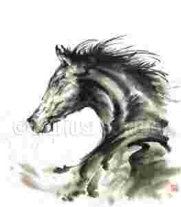 KOŃ CZARNY OGIER obraz japoński plakat KONIE A3