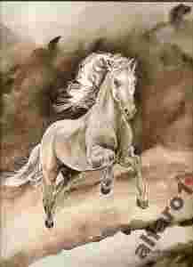 KOŃ--SEPIA Z ODROBINĄ CZERWIENI--AKWARELA