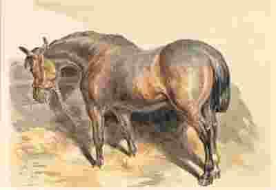KOŃ W STAJNI akwarela z XiX wieku