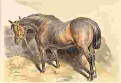 KOŃ W STAJNI akwarela z XiX wieku