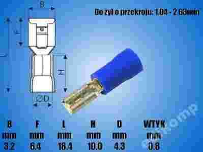 Końcówka płaska, żeńska, izolowana. Izolacja zapobiega przeginaniu sie końcówki podczas montażu przewodu.