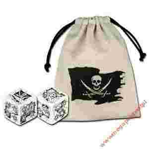 Bezkresne morze, wyspy i statki. Nieopisane przygody, sztormy i bitwy morskie z flagą na maszcie. Czas poprawić opaskę na oku i zapakować łupy do sakwy! Prezentujemy wam dwie wspaniale zdobione kości Pirackie - na każdym z boków znajdziecie wycinek mapy z konturami lądów do odkrycia. A na najwyższej ściance.. Piracka flaga! A do tego lniana sakiewka na wszystkie wasze Skarby! Drżyjcie szczury lądowe!