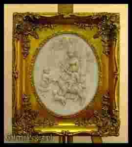 KOBIETA DZIECKO I KOZIOŁ PŁASKORZEŹBA W ALABASTRZE