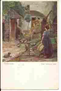 kobieta - kury - studnia - kury - pocztówka nr 62