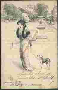 Kobieta z psem na smyczy MODA art z/o -br/zn