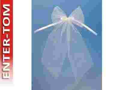 Kokardka z tasiemką, biała, 2 szt.