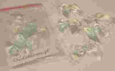 Kokardki j. niebieskie wykonane ze wstążki atlasowejszer.0,6mm, wielkość kokardki 2x2cm.
